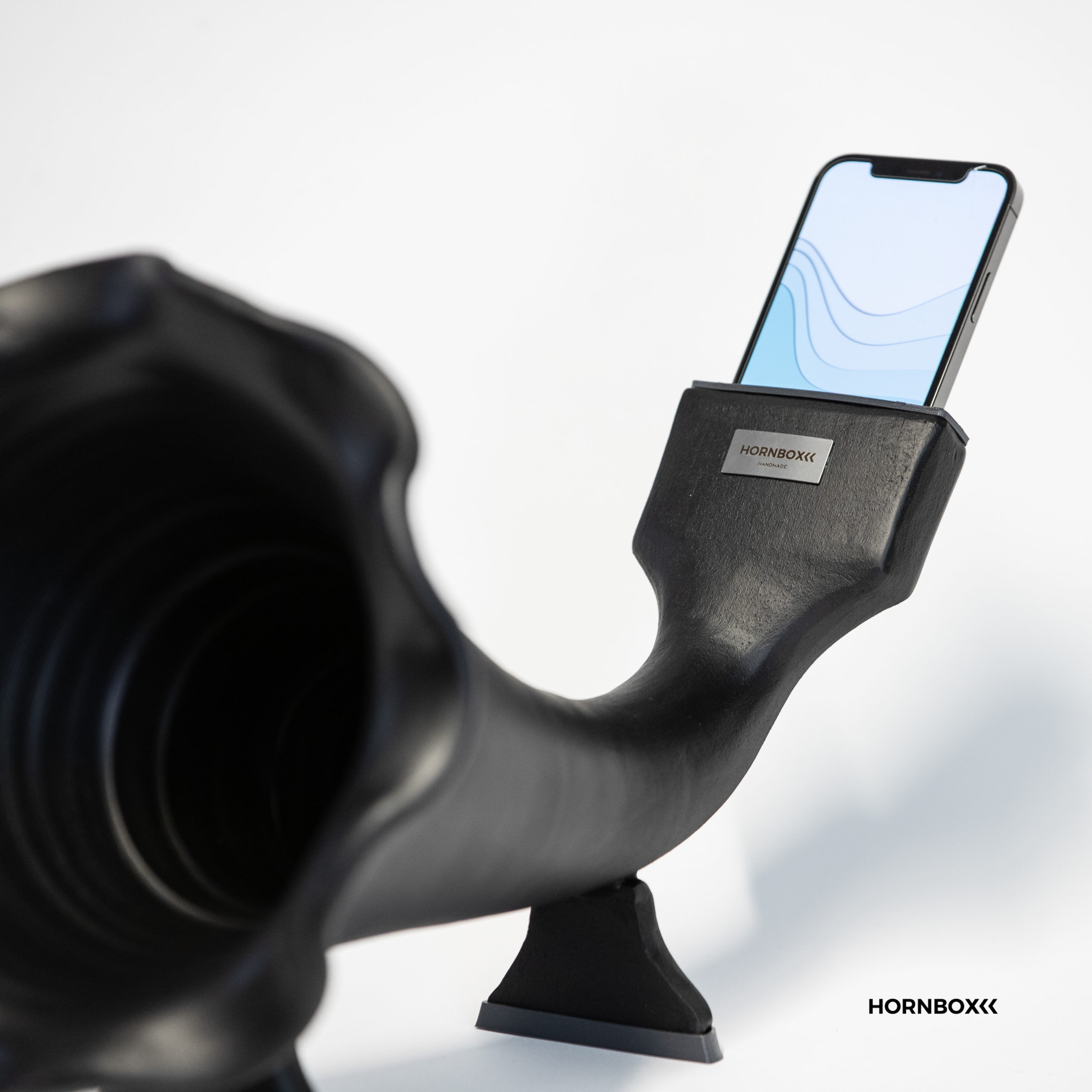 Spiele mit jeder beliebigen App deine Lieblingsmusik ab und genieße die raumfüllenden Klänge. Geniale und bewährte Technik, neu ausgedacht. Die HORNBOX ist ein handgemachtes Grammofon aus natürlichem Ton, das bequem mit einem Smartphone genutzt werden kann. Das Smartphone wird lediglich in den Schacht gelegt und die Klangverstärkung der HORNBOX erzeugt die Klang-Charakteristik von Grammofon-Wiedergaben. Ganz ohne Akku laden und Bluetooth. Hole dir das ultimative Klangerlebnis ins Wohnzimmer.